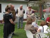 sich bei herrlichen Sommerwetter die erweiterte Gartenausstellung und die Werkstatt angeschaut, sowie dem Gasttöpfer Immo Ecke beim Drehen an der Töpferscheibe bestaunt.