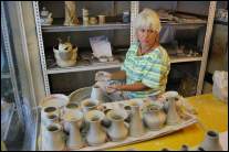 Dauer 45 Minuten, Kosten 2,- € pro Person, min. 10 - max. 25 PersonenIn der Werkstatt werden die einzelnen Töpferarbeiten sowie die Brennöfen etc. erklärt. Im Anschluss wird an der Töpferscheibe schrittweise gezeigt, wie ein neues Gefäß entsteht.